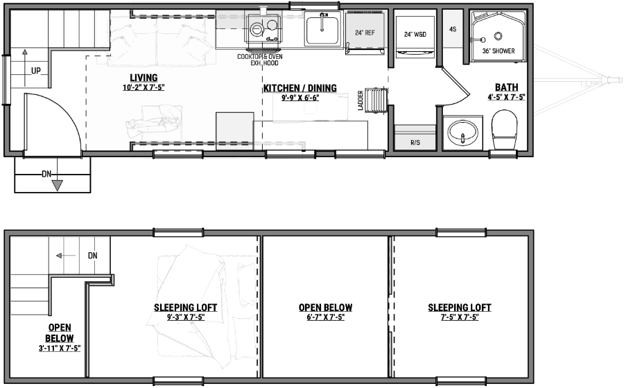 The Yukon offers spacious and flexible living in a compact RV footprint. With room to sleep four and dual sleeping lofts, it’s ideal for families, guests, or anyone wanting a little extra room to stretch out.
